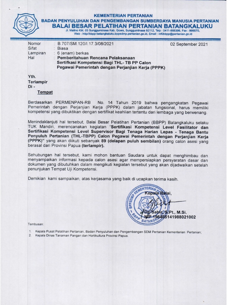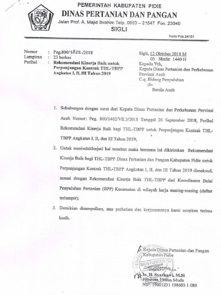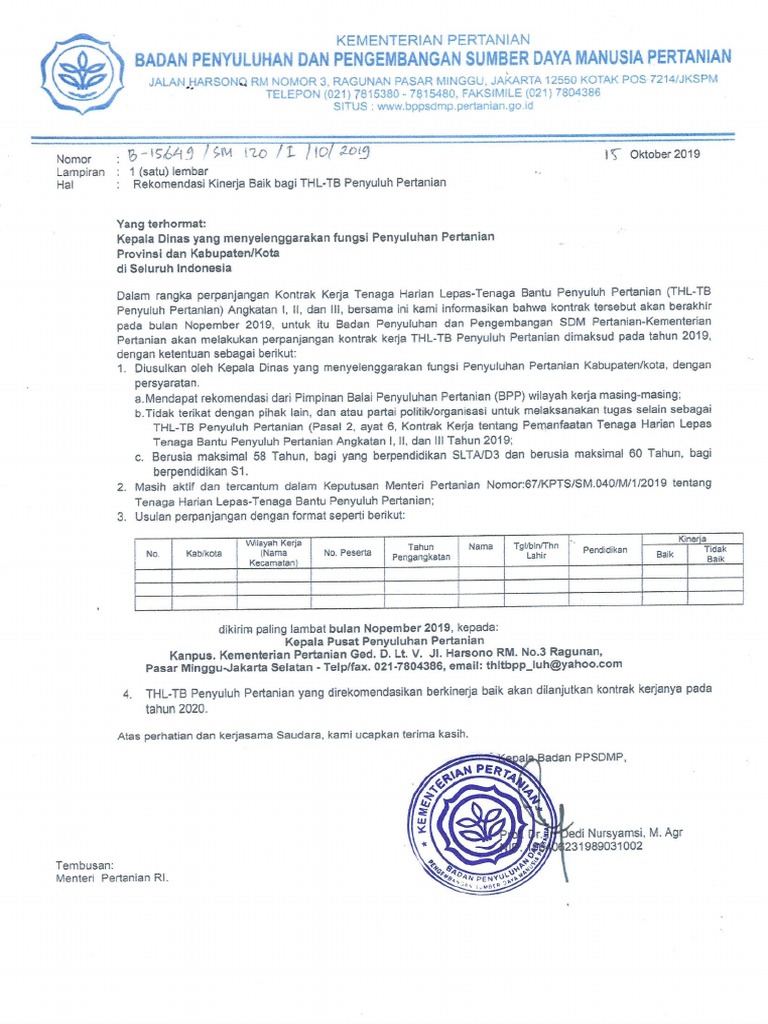 Surat Rekomendasi Kinerja Baik Bagi Thl Tb Penyuluh Pertanian Pdf